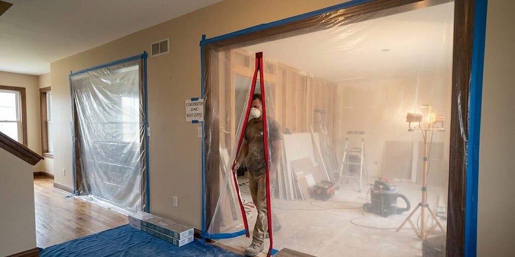 Dust control starts by defining the work zone. A reusable barrier system can help keep the rest of the home comfortable while construction continues.